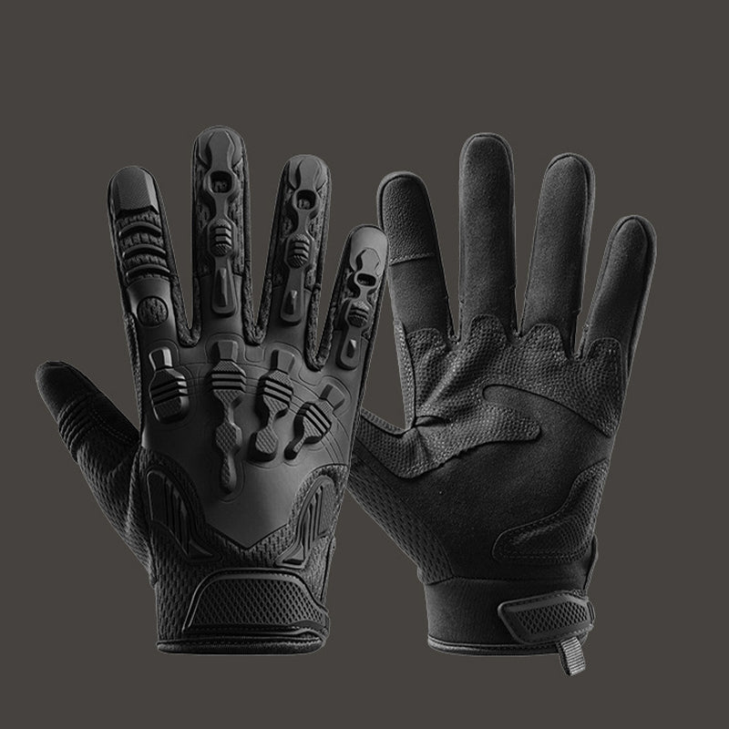 All Terrain Touchscreen Tactical Glove is a Durable heavy-duty work glove: The palm of the black skeleton motorcycle glove men is lined with Kevlar fiber for increased abrasion, cut, and tear resistance. The mesh cloth of the gloves is highly elastic and breathable, providing a full flexibility while dissipating heat. The first part of the thumb, index finger and middle finger are made of touchscreen material, so you can touch your phone screen sensitively and use it conveniently.
